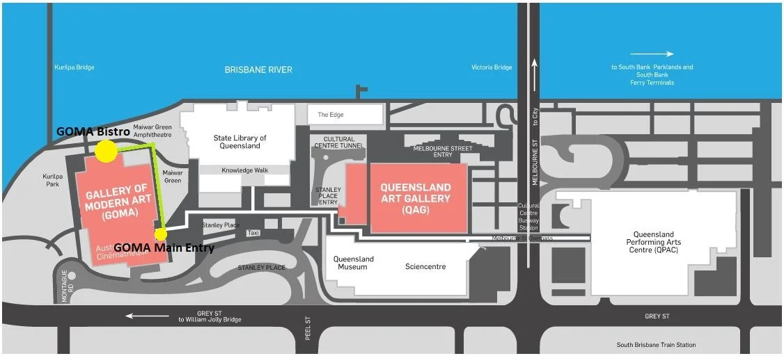 The Gallery of Modern Art (GOMA) is located in South Bank, Brisbane’s cultural precinct. Staying near South Bank, the Brisbane CBD or Fortitude Valley will give you the best access to the venue and public transport.